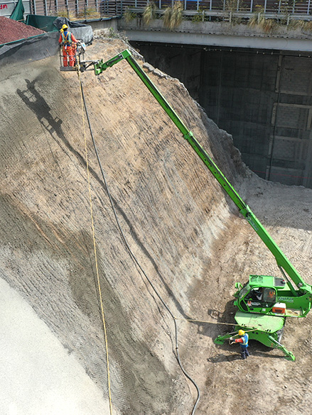 La perforación de anclas es un proceso constructivo clave para la contención de taludes. Consiste en perforar el terreno y colocar elementos de acero, como cables o varillas corrugadas, para estabilizar áreas vulnerables.